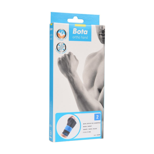 Bota ortho handpols 505 is een bandage met een anatomische pasvorm met duim. Het is een bandage met een zeer stevige multi-elastisch (3D) ademend breiwerk met een extra soepele boven- en onderrand. Met uitneembare spalk en regelbare versteviging. Dit product wordt gebruikt bij de volgende indicaties; Posttraumatisch, postoperatief, tendinopathie/tendovaginitis, rhizarthrose, inflammatoir reumatisch lijden, de quervain tendinitis maar kan ook gebruikt worden bij overbelasting en preventie.