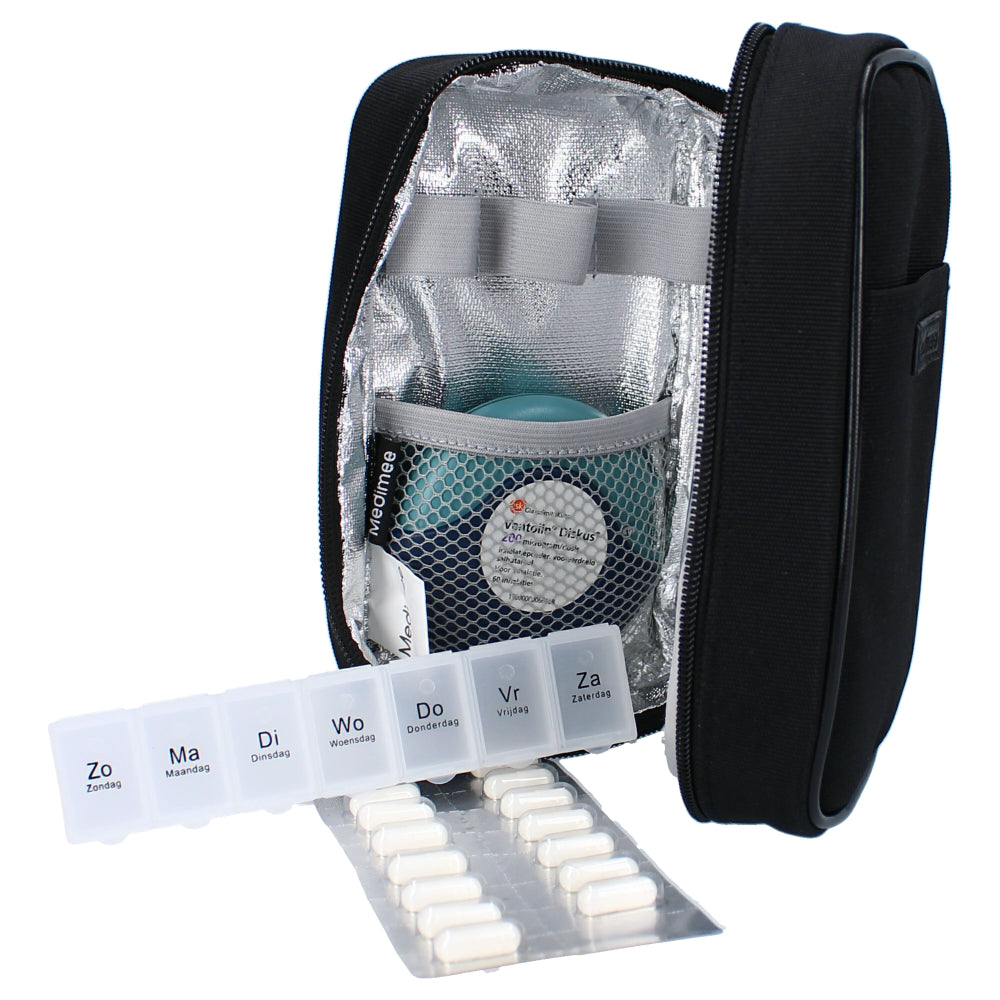 Medikamente und Zubehör sicher und übersichtlich an einem Ort. Diese vollständig isolierte Medikamententasche verfügt über 7 transparente Reißverschlussfächer, eine geräumige Vordertasche und einen medizinischen Ausweis auf der Vorderseite. Mit dieser Medikamententasche können Sie Ihre Medikamente sicher und übersichtlich mitnehmen.