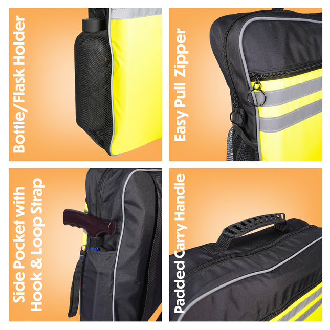 Die Rollstuhl-Krückentasche ist die ideale Aufbewahrungstasche für Rollstuhlfahrer und bietet eine praktische Lösung für den sicheren Transport mehrerer Gegenstände. Diese Tasche wurde speziell für die Rückseite der meisten Standardrollstühle mit Schiebegriffen und vieler Elektromobile entwickelt. Die Tasche bietet ausreichend Stauraum mit Reißverschluss für Mäntel, Lebensmittel, Medikamente, Snacks und mehr. Sie verfügt außerdem über eine große Reißverschlusstasche oben, tiefe Vordertaschen und eine Gesäßtasche für Krücken oder Gehstöcke.