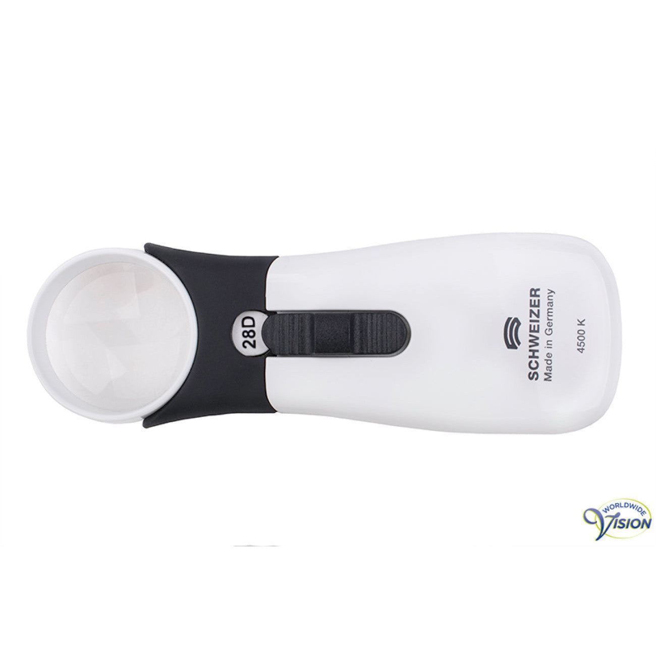 Die Schweizer ERGO-Lux MP Mobile 164282 28D ist eine tragbare Handlupe mit 7-facher Vergrößerung , ideal zum Lesen kleiner Texte, für Hobbyarbeiten oder detaillierte Präzisionsarbeiten. Die asphärische 35-mm-Linse sorgt für ein helles, verzerrungsfreies Bild, während die SMD-LED-Beleuchtung mit doppelter Intensität (4500 K) für optimale Beleuchtung unter verschiedenen Bedingungen sorgt.