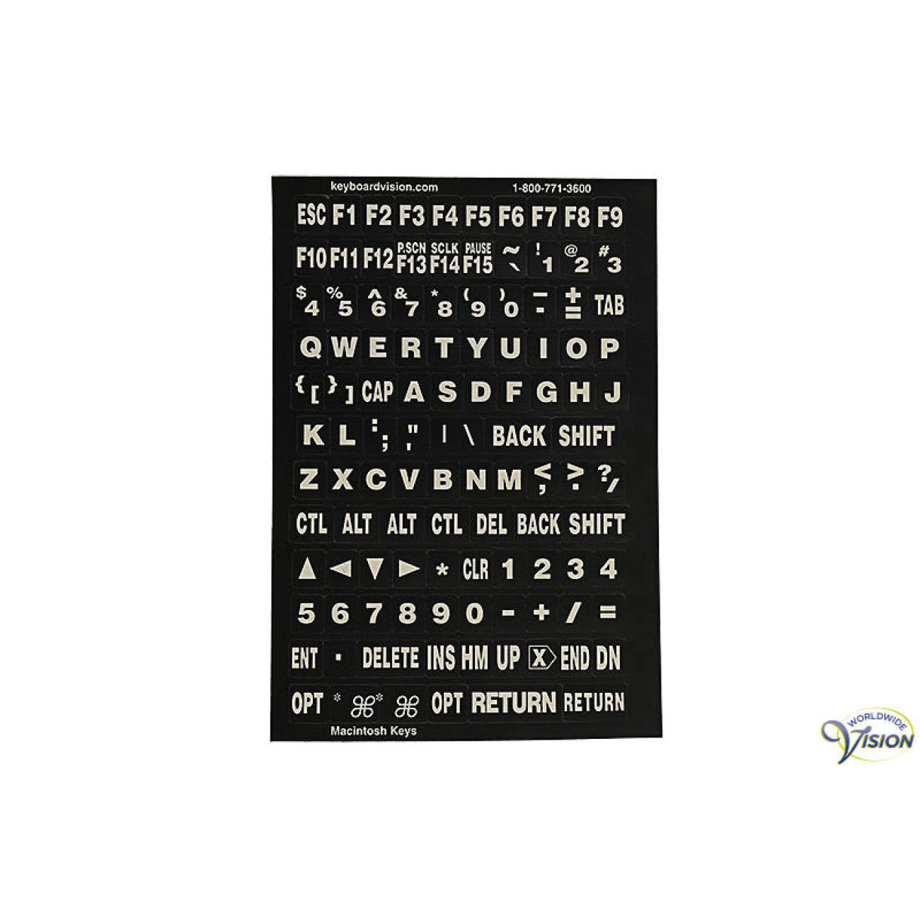 Die Tastaturaufkleber mit weißen Zeichen auf schwarzem Hintergrund eignen sich ideal für ein klareres und besser lesbares Tastaturlayout . Passend für alle Laptop-, PC- und Apple-Tastaturen bieten diese Aufkleber eine einfache Möglichkeit , abgenutzte oder schwer lesbare Tasten auszutauschen .