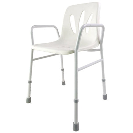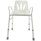 Dieser Duschstuhl ist kompakt, leicht und einfach höhenverstellbar. Ideal für die sichere Anwendung in der Dusche oder im Badezimmer.
