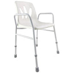 Verstellbarer Duschstuhl mit Rückenlehne und Armlehnen – 82 bis 92 cm Höhe