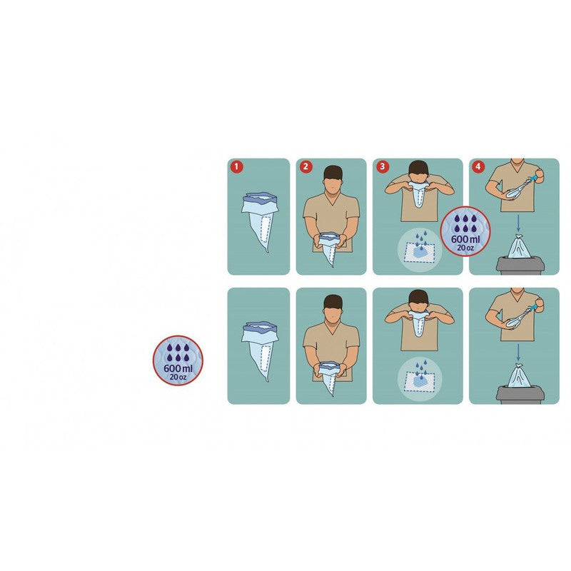 Diese hochwertigen Auffangbeutel sorgen für eine sichere und hygienische Sammlung von Urin, Kot und Erbrochenem. Die Auffangbeutel sind mit superabsorbierenden Einlagen ausgestattet, die die Ausscheidungen in ein festes Gel (600 ml) umwandeln und zudem den Geruch neutralisieren.