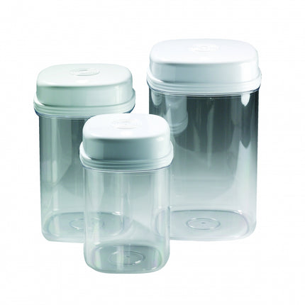 Set mit 3 Küchenboxen. Einfach und schnell zu öffnen. Drücken Sie den geriffelten Knopf am Rand und die Box ist... Lesen Sie mehr
