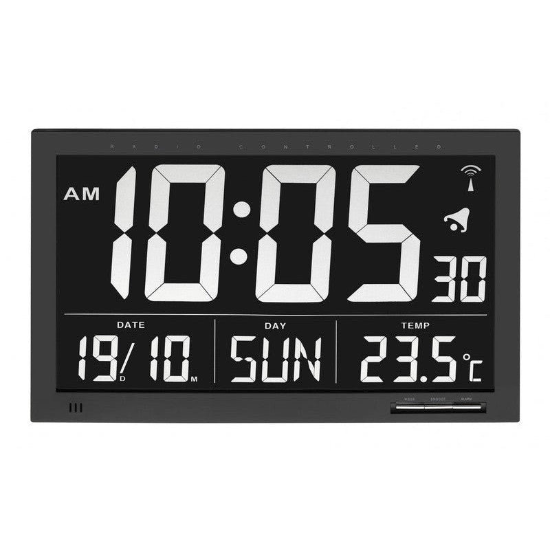 Große Funkuhr mit Zeitanzeige und Wecker mit Schlummerfunktion. Anzeige des Wochentags in 8 Sprachen (Niederländisch, Englisch, Deutsch, Spanisch, Französisch, Italienisch,... Lesen Sie mehr