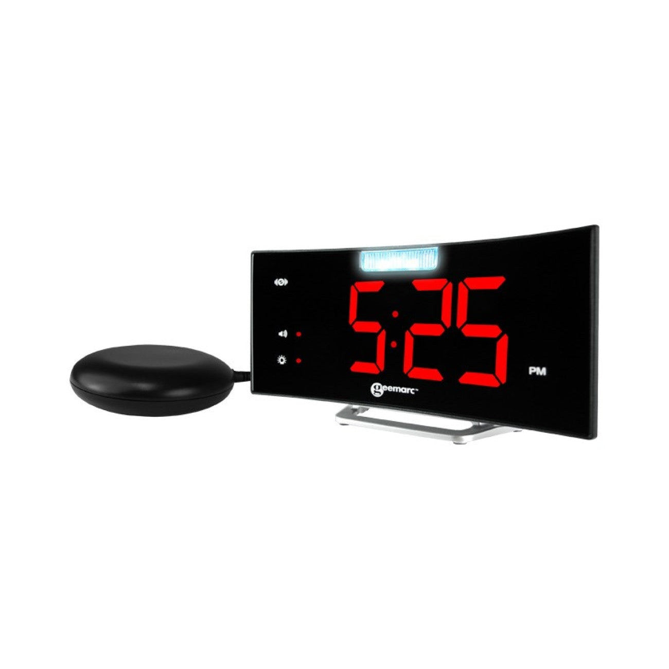 Der Wake 'n Shake Curve Wecker ist der ideale Wecker für Hör- und Sehbehinderte. Das große, 11 x 5 cm große, gebogene LED-Display zeigt rote Zahlen auf schwarzem Hintergrund und ermöglicht so eine einfache Ablesung der Uhrzeit.