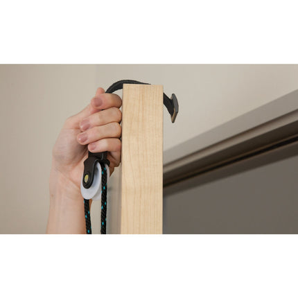 De armtrainer helpt om de bovenlichaamspieren aan te sterken na bijvoorbeeld een CVA. De sterke arm trekt de aangedane arm in een vloeiende gecontroleerde beweging omhoog. Heeft een sterk stoffen bandje dat precies past tussen de deur en het kozijn. Veroorzaakt geen krassen.