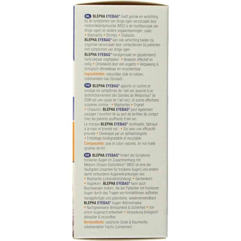 Blepha Eyebag 1 Stuks – Natuurlijk verwarmend oogmasker voor verlichting van droge, vermoeide en pijnlijke ogen.Aanbevolen door oogartsen bij klachten... Lees meer