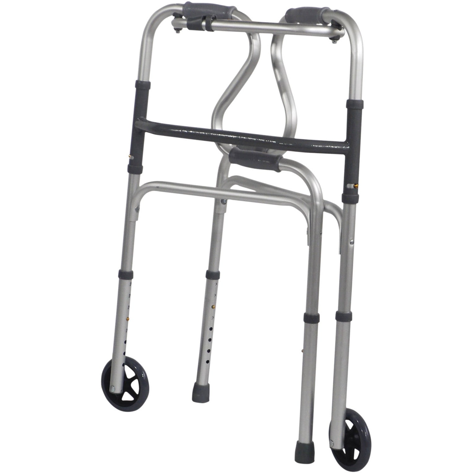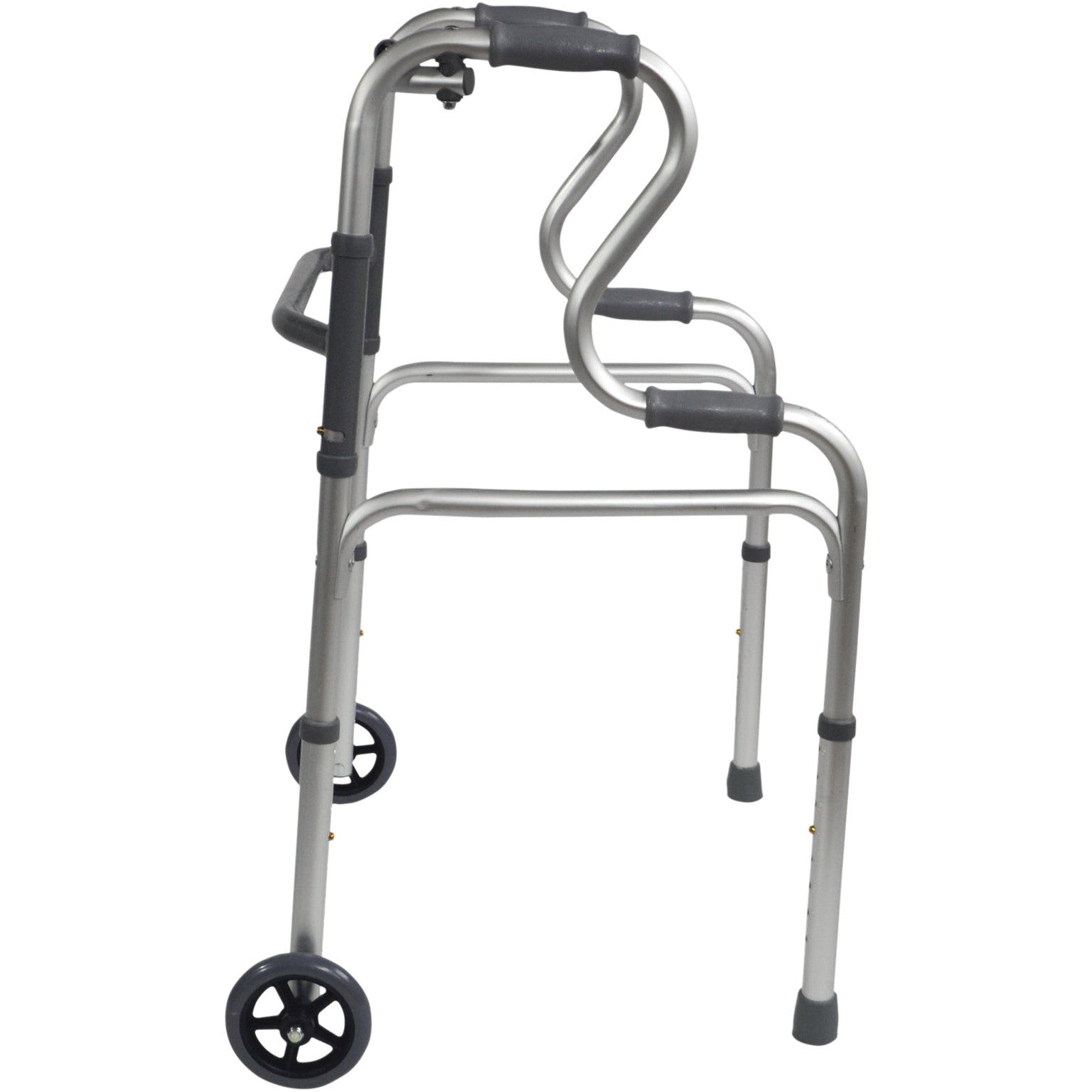 Het Dual Riser opvouwbare aluminium looprek met wielen is ontworpen om gebruikers veilig te ondersteunen bij het opstaan vanuit een zitpositie. Dankzij de dubbele handgrepen, het lichte gewicht en de stevige aluminium constructie biedt dit looprek extra comfort en stabiliteit.
