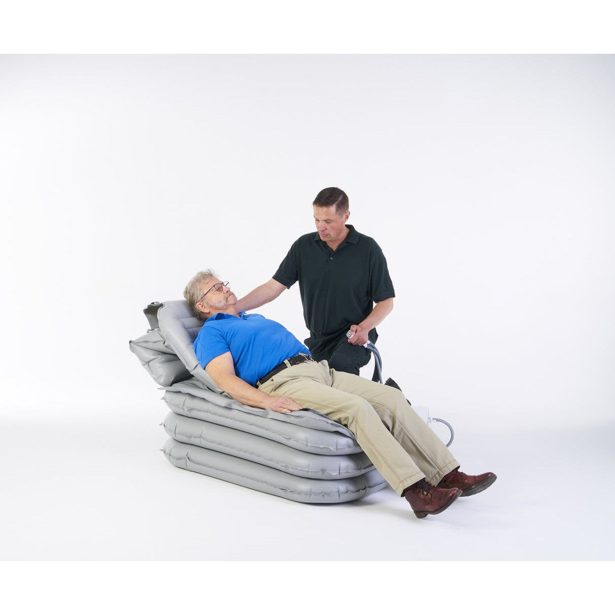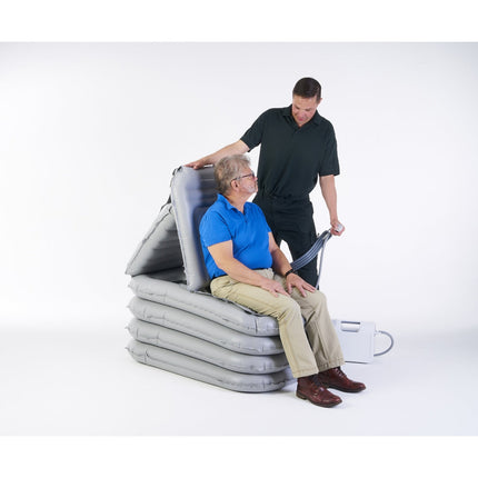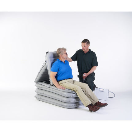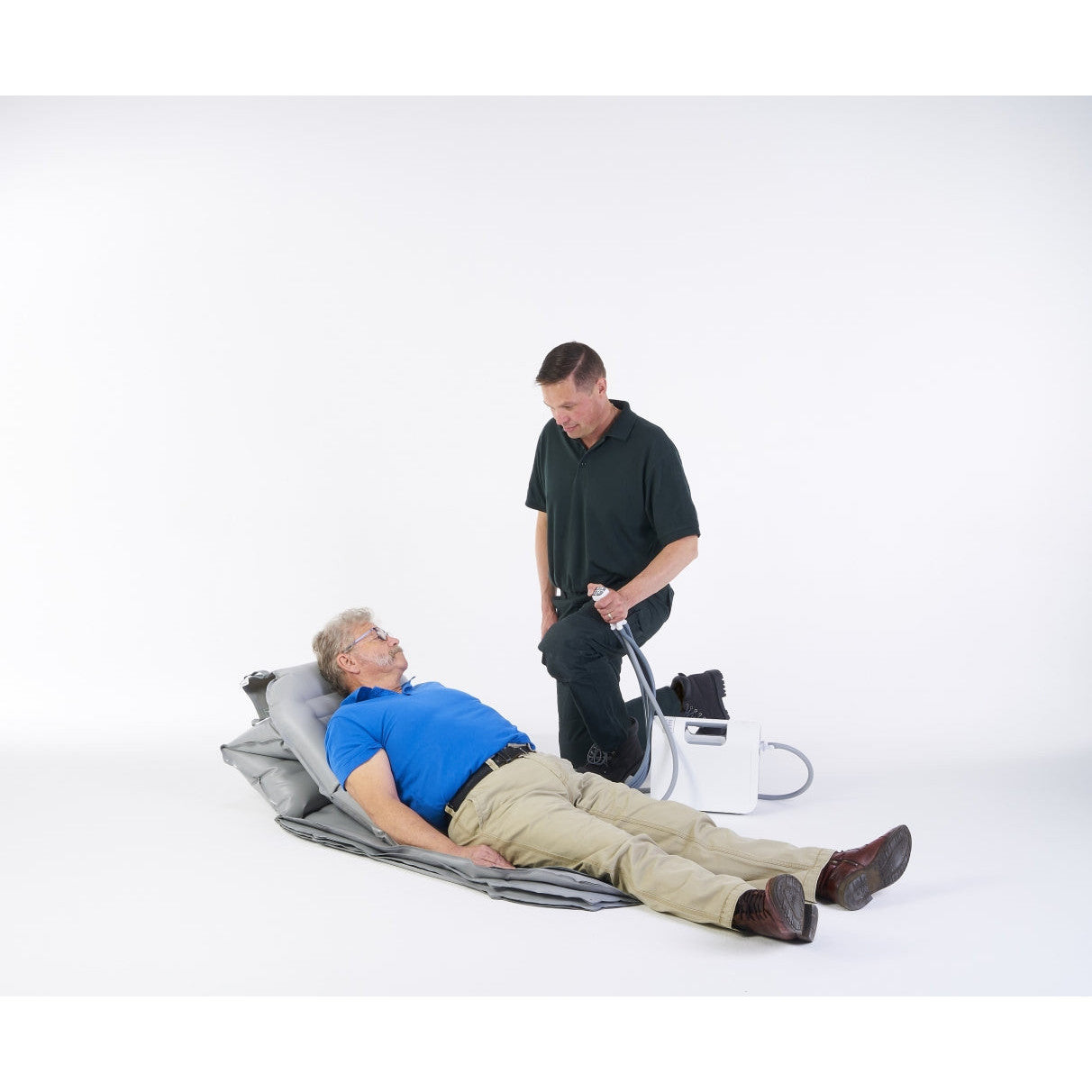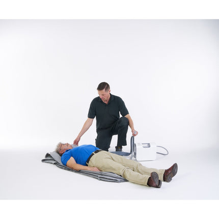 Dit tilkussen is speciaal ontworpen voor zorgverleners om personen op een veilige en waardige manier van de grond op te tillen. De gevallen persoon kan op het kussen schuiven of worden gerold, wordt vervolgens geholpen om rechtop te gaan zitten en weer op te kunnen staan. Het tilkussen werkt op een accu en kan eenvoudig worden opgeblazen. Het tilkussen vermindert de risico’s van het verplaatsen en tillen van patiënten en verlaagt de kans op letsel voor professionele zorgverleners. Na gebruik het kussen leeg laten lopen, opvouwen en opbergen. Makkelijk mee te nemen. Geschikt voor gebruik binnen- en buitenshuis.