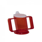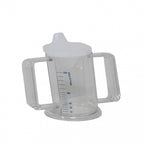Ideale schuine, transparante beker met grote handgrepen. U kunt drinken zonder uw hoofd naar achteren te kantelen.