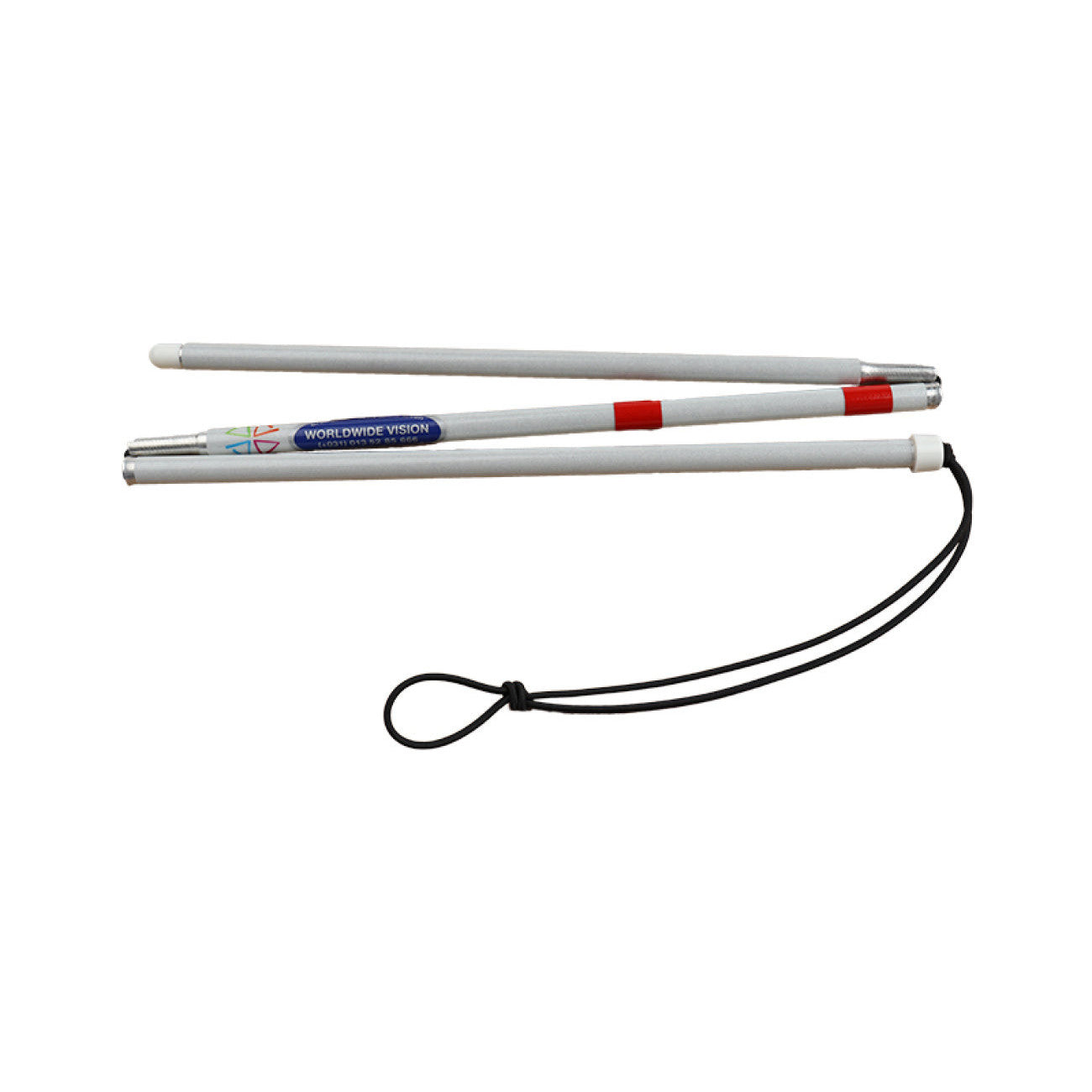 Herkenningsstok gemaakt van aluminium met nylon punt. Voorzien van witte reflectietape en 2 rode reflectie bandjes. Opvouwbaar in drie delen... Lees meer