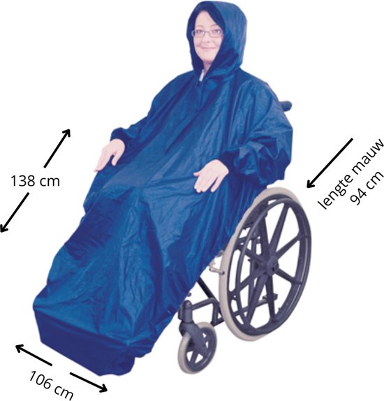 Deze rolstoelponcho met mouwen en fleece voering biedt uitstekende bescherming tegen alle weersomstandigheden. De poncho is one size; bekijk daarom altijd eerst de maatfoto om te controleren of hij geschikt is voor uw situatie. Dankzij de rits in de halslijn is de poncho eenvoudig aan- en uit te trekken. De capuchon heeft een trekkoord zodat hij goed afsluit, en de mouwen geven extra bewegingsvrijheid, waardoor u de duwhoepels of bedieningselementen beter kunt gebruiken.
