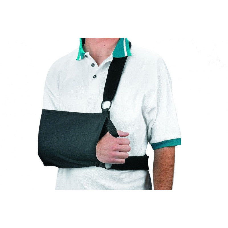 Zachte sling ter ondersteuning van het gebied van elleboog tot aan pols. De tailleband houdt de arm tegen het lichaam en voorkomt schouderbewegingen. De speciale duimlus in de sling zorgt dat de pols en hand in de juiste houding blijven. Gechikt voor beide armen. Hand- en machinewasbaar, latexvrij.