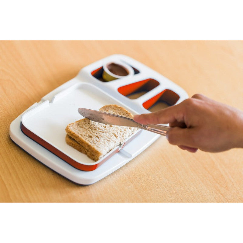 Hét hulpmiddel om personen met één functionele arm weer zelfstandig te laten eten.Het multifunctionele bord heeft spievormige anti-slip vakjes waarin... Lees meer